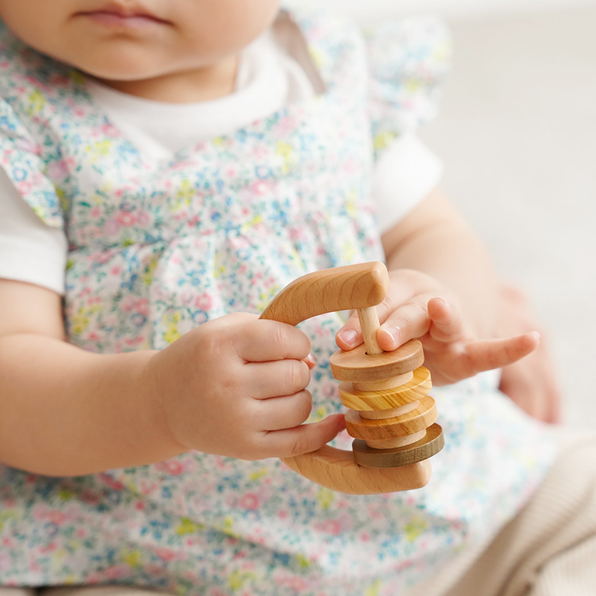あかちゃんセットのセット内容をご紹介していきます。一つ一つあかちゃんのため、そしてお母さんの育児が少しでも楽になるように、家族が木のおもちゃで笑顔になるようにこだわりぬいた木のおもちゃです。赤ちゃんがはじめて出会うおもちゃにふさわしく、赤ちゃんの豊かな発育のために、欠かせないおもちゃを集めています。